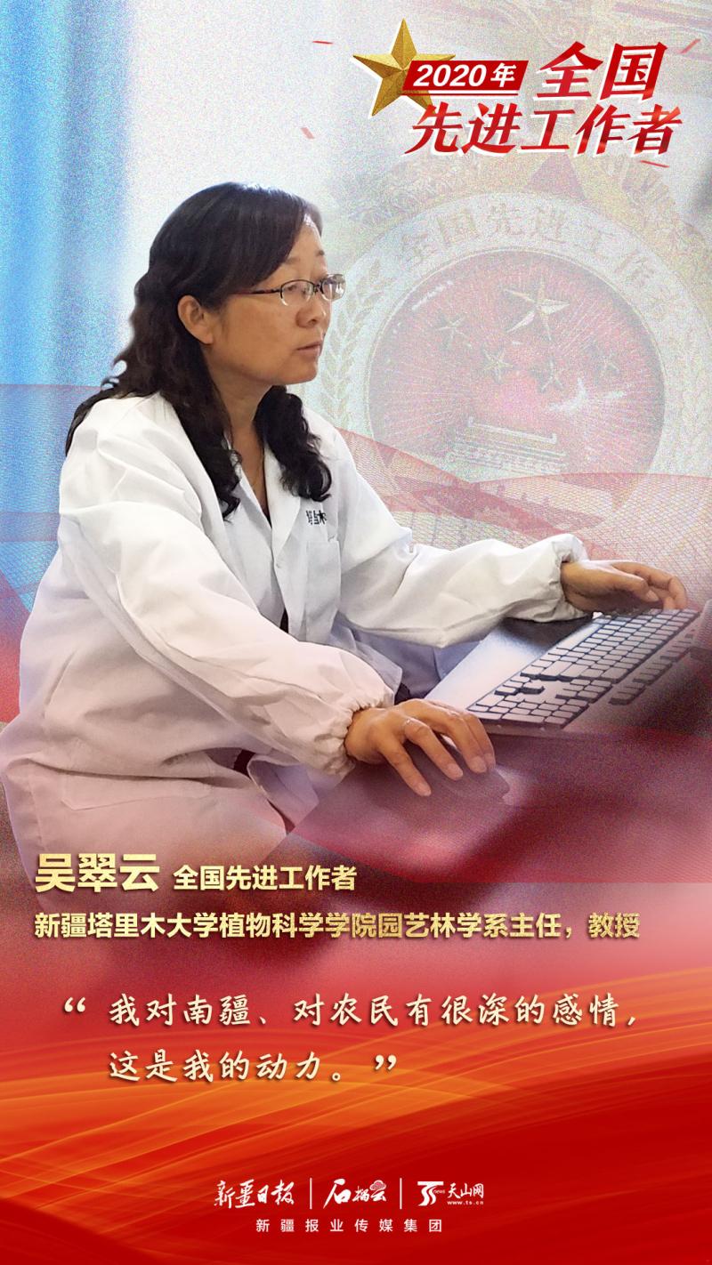 2020年全国劳动模范和先进工作者表彰大会11月24日在北京举办,52岁的塔里木大学植物科学学院园艺林学教授吴翠云当选为全国先进工作者,记者联系到她时,她刚刚领到奖章。