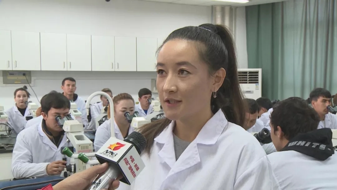 喀什疏勒县洋大曼乡防疫员努尔比耶•吾舒尔说:“我们来这里学到了很多知识,这是一次好机会,我们会珍惜这个机会好好学习,加强实力,为人民服务。”
