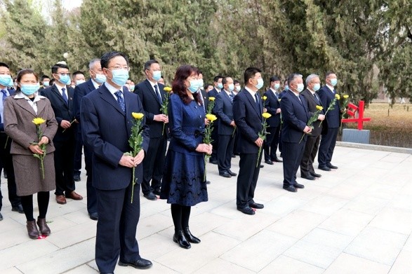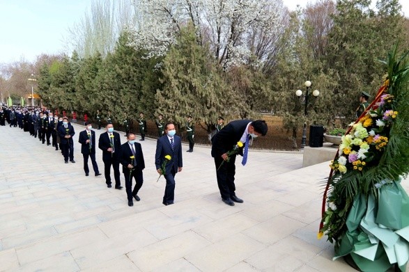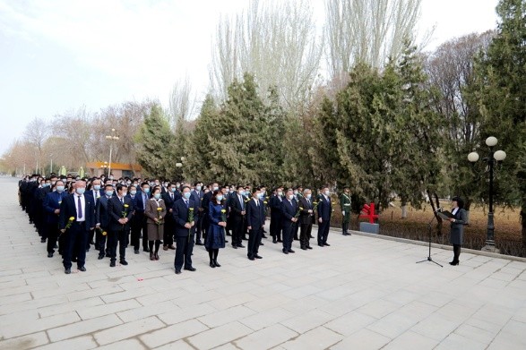 天地英雄气,千秋尚凛然。清明时节,缅怀英烈祭忠魂,抚今追昔思奋进。4月2日一大早,塔里木大学全体处级干部与师生代表,手捧鲜艳的小黄菊,一同来到红色文化广场,庄严列队站在王震将军铜像前,怀着无比崇敬的心情,缅怀先烈的丰功伟绩和崇高精神,表达深切悼念和无限敬仰,更表达秉承烈士遗志,传承红色血脉的坚定信心决心。