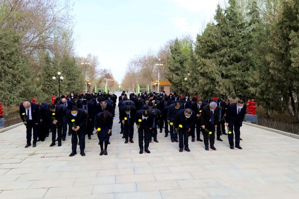 天地英雄气,千秋尚凛然。清明时节,缅怀英烈祭忠魂,抚今追昔思奋进。4月2日一大早,塔里木大学全体处级干部与师生代表,手捧鲜艳的小黄菊,一同来到红色文化广场,庄严列队站在王震将军铜像前,怀着无比崇敬的心情,缅怀先烈的丰功伟绩和崇高精神,表达深切悼念和无限敬仰,更表达秉承烈士遗志,传承红色血脉的坚定信心决心。