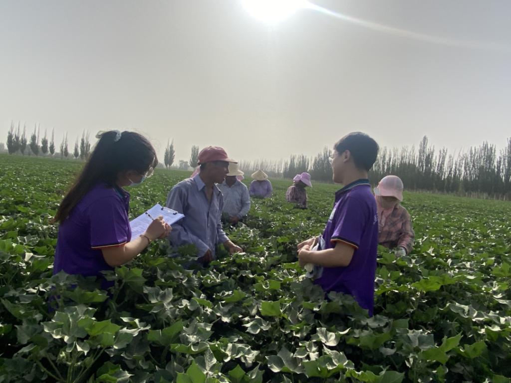 7月4日,根据国家乡村振兴战略和新疆高质量发展需要,塔里木大学经济与管理学院“高扬科学旗帜,践行八字真经”三下乡社会实践小组开展关于土地流转的实地调研活动。本次实践小组第一站——十二团九连,用脚步丈量祖国大地,通过此次活动向农户宣传土地流转的益处,促进农业资源有效配置最大化,提高土地利用率和职工收入。