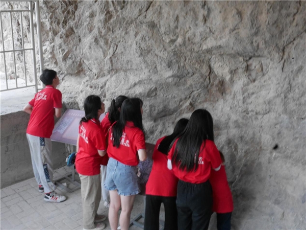图为实践队在调查刘平国刻石。中国青年网通讯员 李双凤 摄