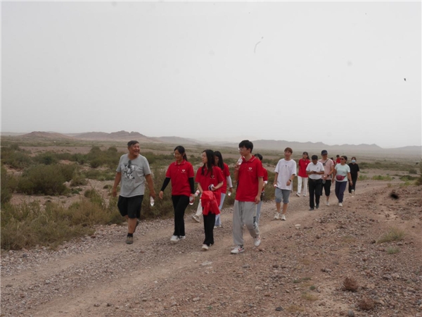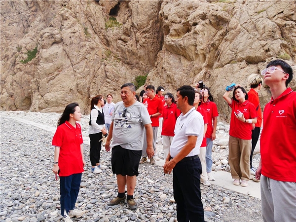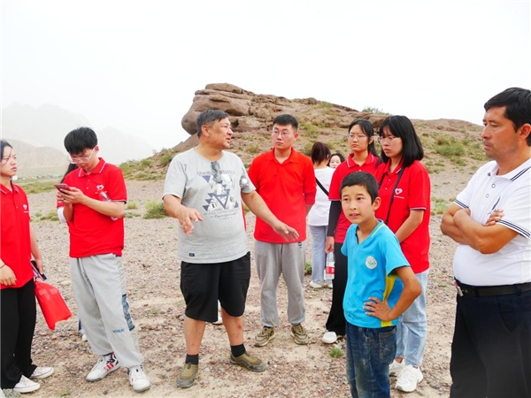 中国青年网阿拉尔7月5日电(通讯员 王溪域 李双凤)习近平总书记在第三次中央新疆工作座谈会上的重要讲话中指出:“要完整准确贯彻新时代党的治疆方略,牢牢扭住新疆工作总目标,依法治疆、团结稳疆、文化润疆、富民兴疆、长期建疆。”“文化润疆”概念的提出,不仅进一步丰富和拓展了新时代党的治疆方略的话语体系与内涵空间,同时也给了实践团队诸多灵感与启示。借助此次塔里木大学暑期三下乡社会实践活动,7月5日下午,在指导老师贾东、李现彩老师的带领下,我们前往阿克苏地区拜城县,走乌孙古道,探寻刘平国刻石。