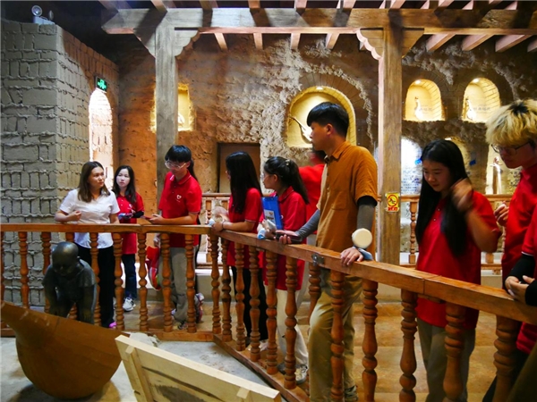 图为团队成员参观龟兹文化乐器展示中心。中国青年网通讯员 龙莉群 摄