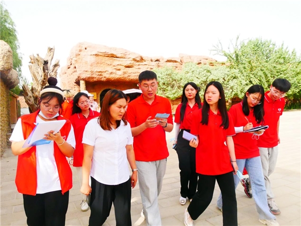图为团队成员向加依村讲解员提问。中国青年网通讯员 王申奥 摄