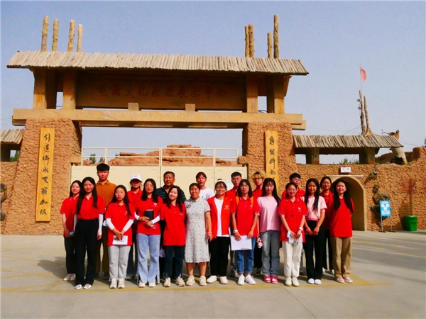 图为团队成员参观加依村龟兹文化乐器展示中心合影留念。中国青年网通讯员 高洁 摄