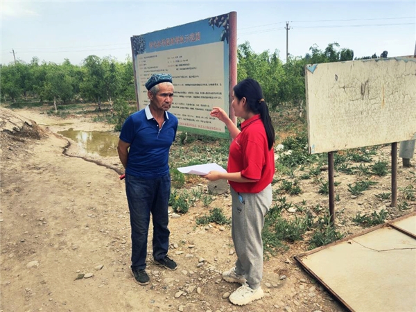 在潘莎莎指导老师的带领下,本团队寻访当地的农户,调研阿克苏地区的棉花虫害防治情况。在交谈的过程中团队了解到,由于受教育程度不同,不同学历的农户对于棉花种植过程中获取和了解棉花病虫害的途径不同、见解也不同,在处理方式和重视程度上也有略微的差异。唯一不变的就是他们期望有效控制棉花病虫害以此来保证自己棉花的产量和质量。本团队利用所学的知识,通过图文结合向农户们详细的补充他们所迷糊的知识,为他们解疑。同时,在遇见不同意见或者是该问题的知识点本团队有所欠缺的情况下,会有专门的队员记录下该问题,并于晚上进行该知识点的补充。确保在下一次遇到类似的问题时本团队会有一个清晰的思路和答案。