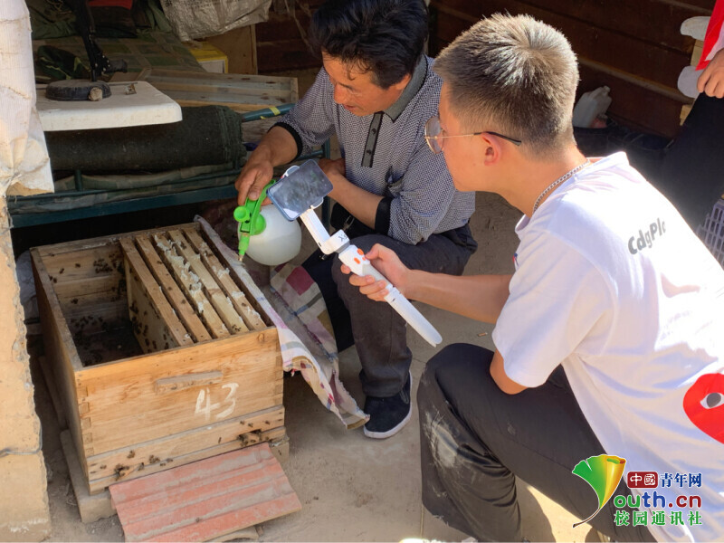 图为当地村民为团队成员讲解中蜂养殖知识。中国青年网通讯员 杨转萍 供图