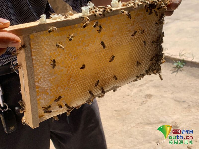 图为当地村民为团队成员展示蜂箱。中国青年网通讯员 杨转萍 供图