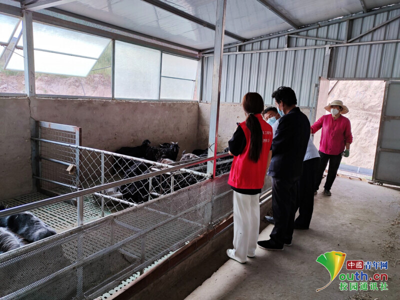 图为团队成员与当地养殖羊场主人了解养殖情况。中国青年网通讯员 曹晓龙 供图