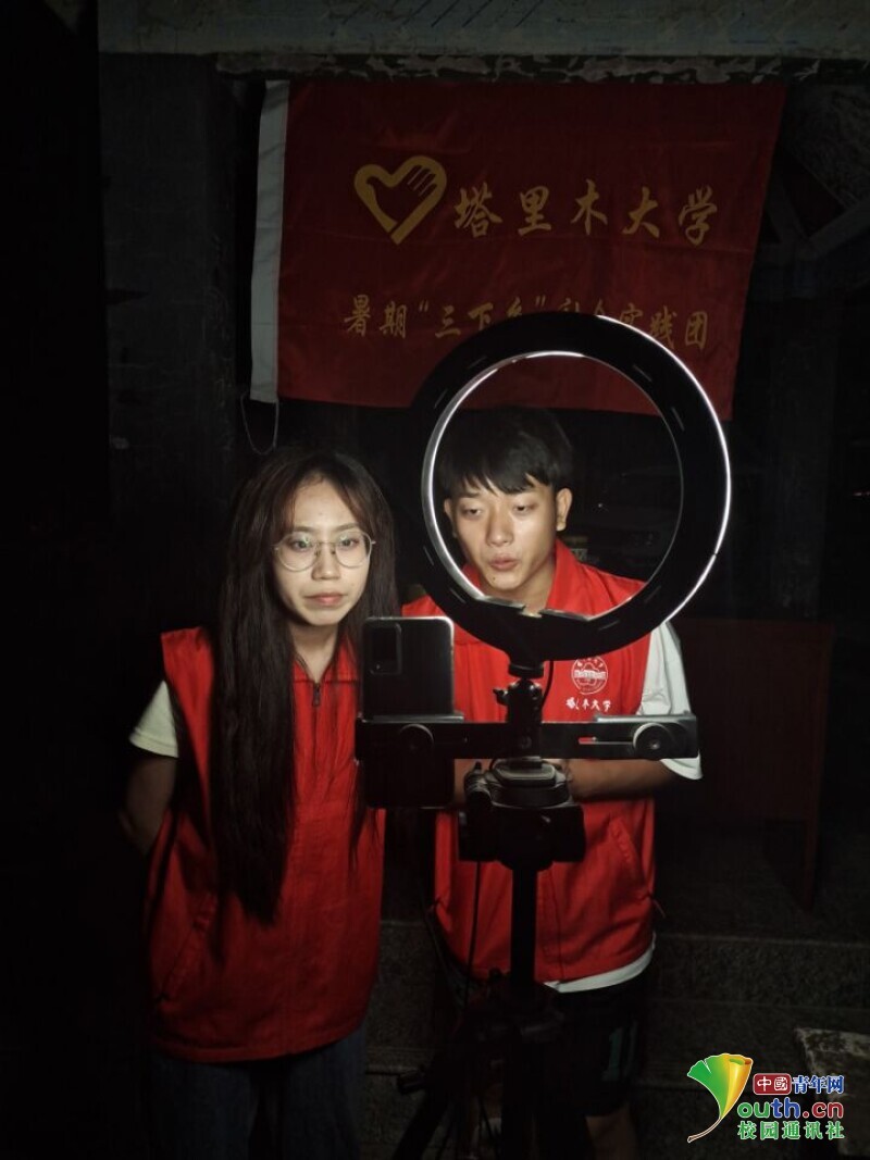 图为团队成员直播带货吊渠村村民自产蜂蜜。中国青年网通讯员 曹晓龙 供图