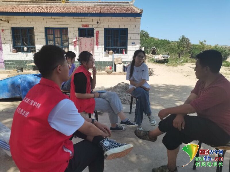 图为团队成员向吊渠村村民了解家庭收入来源及收入情况并向村民积极宣传国家脱贫政策。中国青年网通讯员 曹晓龙 供图