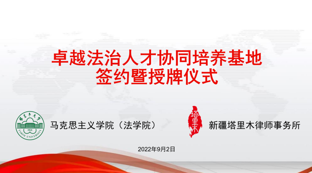 为深入贯彻落实教育部、中央政法委《关于坚持德法兼修实施卓越法治人才教育培养计划2.0的意见》,促进法学理论与法律实践的衔接与贯通,增强法学研究与律师实务的融合发展,加强新时代卓越法治人才培养,2022年9月2日,塔里木大学马克思主义学院(法学院)与新疆塔里木律师事务所签约共建“卓越法治人才协同培养基地”。