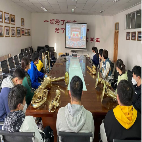 一大早,军乐团的同学们,在参加完常规早训后,怀着激动的心情,围坐在屏幕前,准备好笔和记录本,收看大会直播。