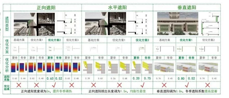 在自然采光方面,通过对室内各房间的采光分析,研究外遮阳对室内空间的影响,比较分析不同尺寸的室内采光系数,为外遮阳构件尺寸提供数据支撑,实现冬季得热与夏季遮阳的平衡优化。