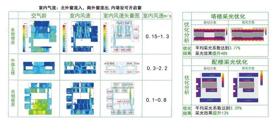 通过对各空间通风等方面模拟,调整设计,改善空间风、光、热等环境,达到能源、舒适、经济等方面的平衡。