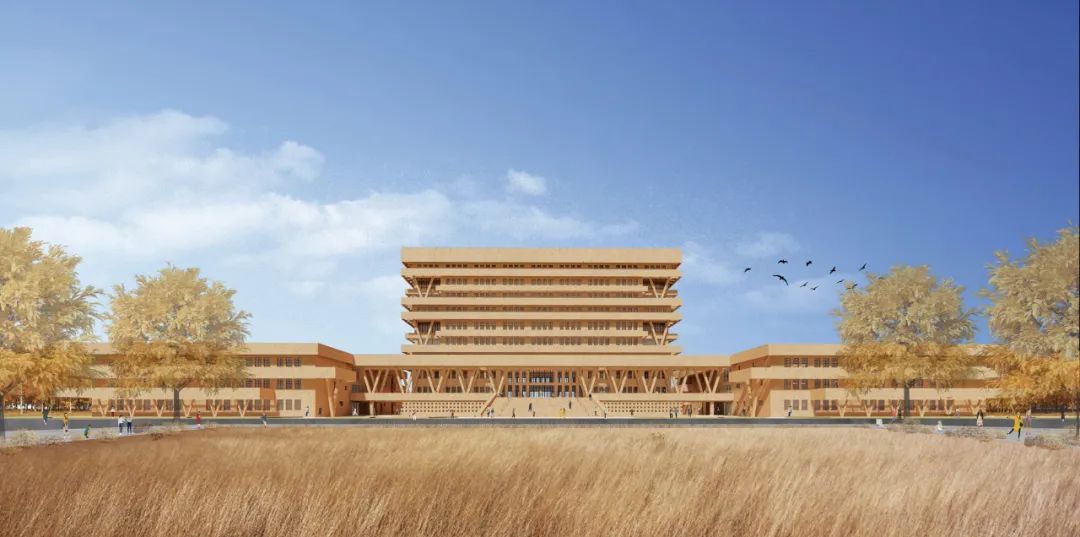 塔里木大学是位于新疆最南的高等学府,具有特殊历史意义及光荣革命传统。校园地处塔克拉玛干沙漠边缘,南临塔里木河,夏季干热、冬季寒冷、太阳辐照强、昼夜温差大、且多沙尘暴天气,当地经济发展水平尚不发达。图信中心是新校区的重要建筑,主要功能为电子图书馆、共享办公、工科基础公共教室及实验室,工程造价建设成本低,较发达地区同 等教学建筑有较大差异。