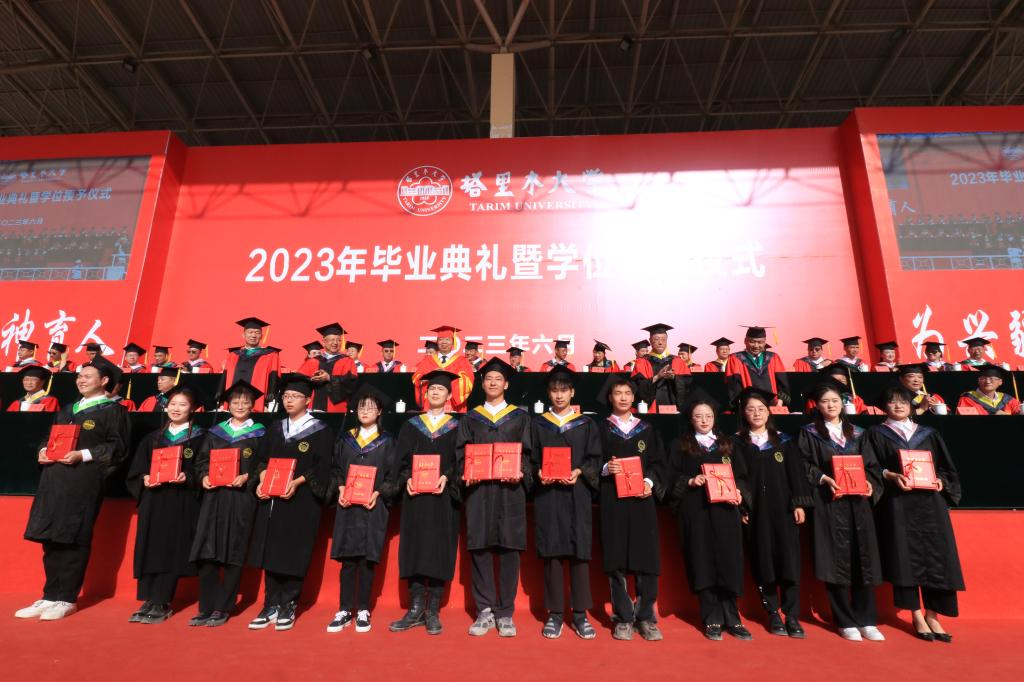 与会校领导为2023届博士研究生、硕士研究生、本科毕业生代表颁发了毕业证书,为兵团级优秀毕业生、校级优秀毕业研究生、校级本科优秀毕业生代表颁发了荣誉证书,还分别为博士毕业生、硕士毕业生代表、本科毕业生代表授予学位。