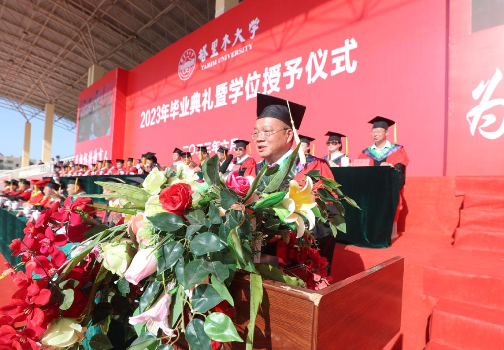 6月16日上午,塔里木大学西区运动场上,艳阳高照,桃李满园。塔里木大学2023届毕业生怀着无比激动的心情隆重集会,迎接属于他们的大学“最后一课”——毕业典礼。