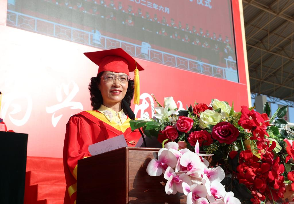 该校党委副书记、校长张爱萍主持时指出,今天,你们向过去的求学生涯作深情的告白;明天,你们将怀揣梦想,奔赴下一场山海。母校深信你们一定会用自己的努力、奋斗与智慧,收获属于你们的成功与喜悦,为胡杨精神添彩,为母校争光。