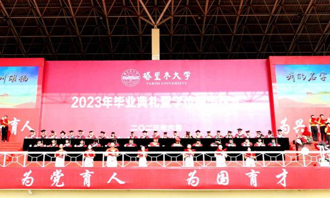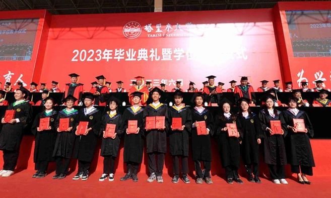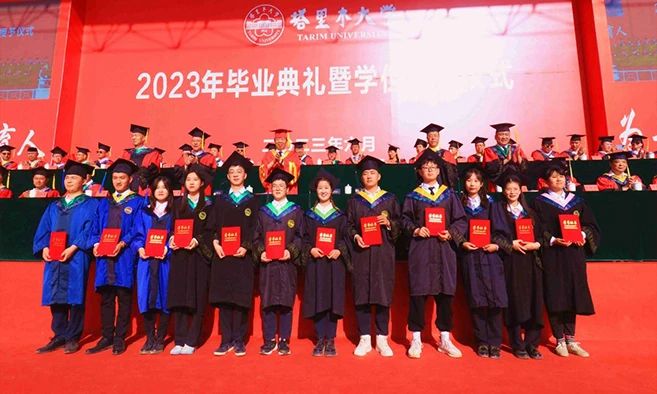 6月16日上午,塔里木大学2023届毕业生怀着激动的心情,迎接属于他们的大学最后一课——毕业典礼。2023年,塔里木大学共有4633名本科生毕业、571名研究生毕业、7名博士生毕业,其中有529名同学考上硕士研究生,1672名同学选择留疆工作,一部分同学携笔从戎、参军入伍,还有部分同学将回到自己的家乡做贡献。