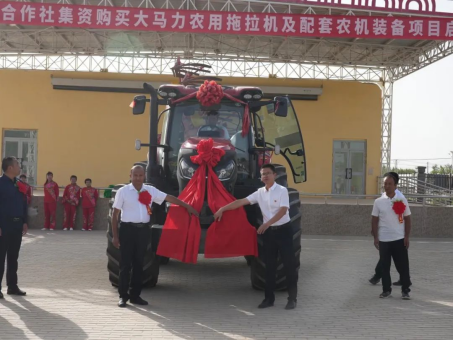 9月1日,昆玉市兵玉种植农民专业合作社购置大马力农用拖拉机及配套农机装备交付仪式在二二五团四连举行。
