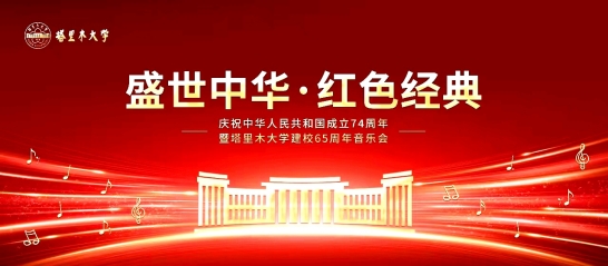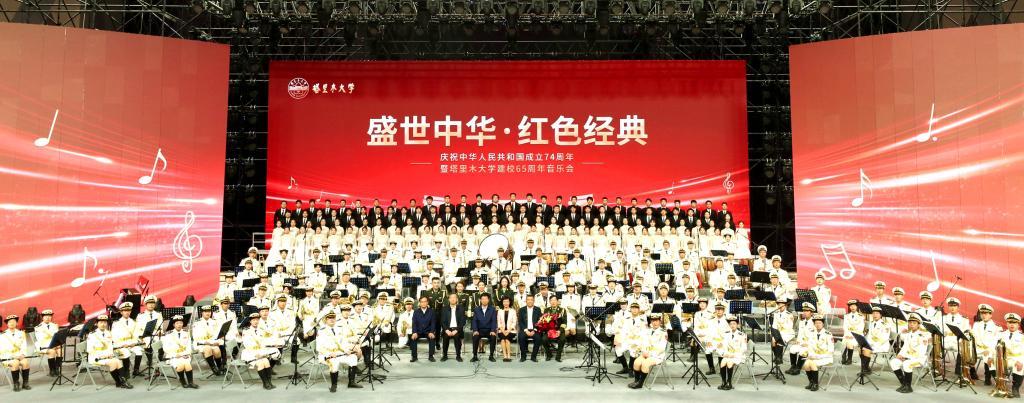 六十五载筚路蓝缕,六十五年风华正茂。在中华人民共和国成立74周年、塔里木大学建校65周年之际,9月29日晚,塔里木大学“盛世中华 红色经典”庆祝中华人民共和国成立74周年暨塔里木大学建校65周年音乐会在新体育馆火热上演。