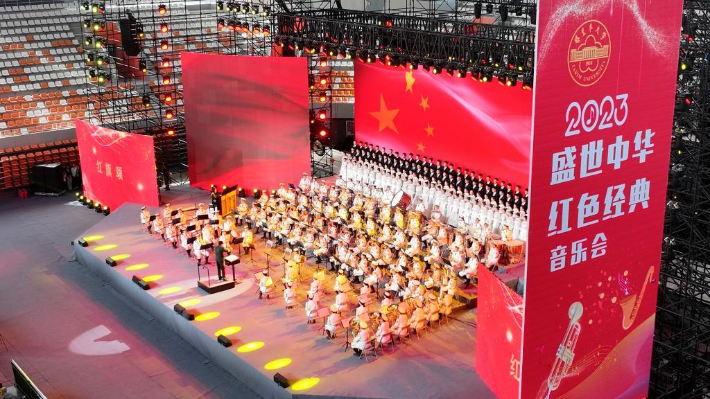 王震将军亲属王京川及家人、校领导赵光辉、张爱萍、曲义勇、于军、石长青、林松涛,全校处级干部、银龄教师代表、退休老教师代表、教师家属、师生代表近3000人在现场观看了音乐会。