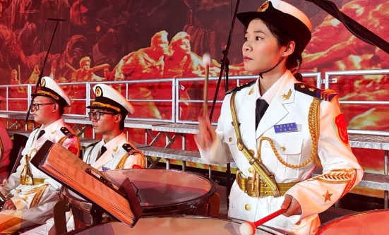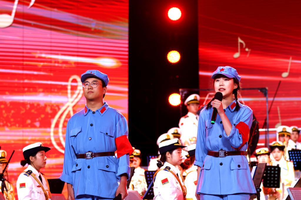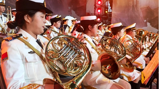 “路迢迢,秋风凉。敌重重,军情忙。红军夜渡于都河,跨过五岭抢湘江……” 伴随着声情并茂的诗朗诵《突破封锁线》,音乐会正式拉开序幕,华丽的制服,金色的鼓号,高亢激昂的音乐充满演奏现场。