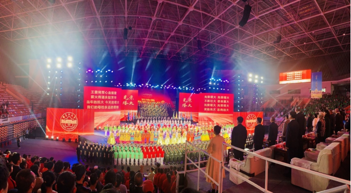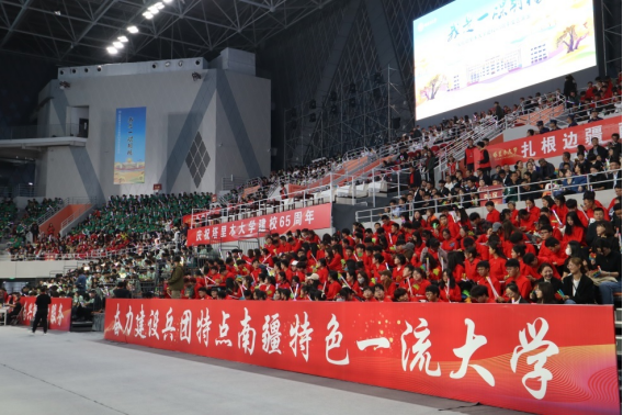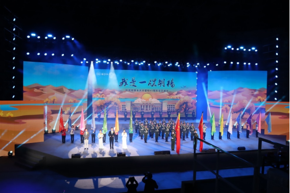 10月4日晚,庆祝塔里木大学建校65周年文艺演出之思政精品课舞台剧——《我是一棵胡杨》在塔里木大学体育馆首演。