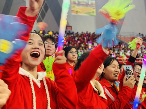 演出现场,塔里木大学学生热情洋溢。 胡杨网 李萍 摄