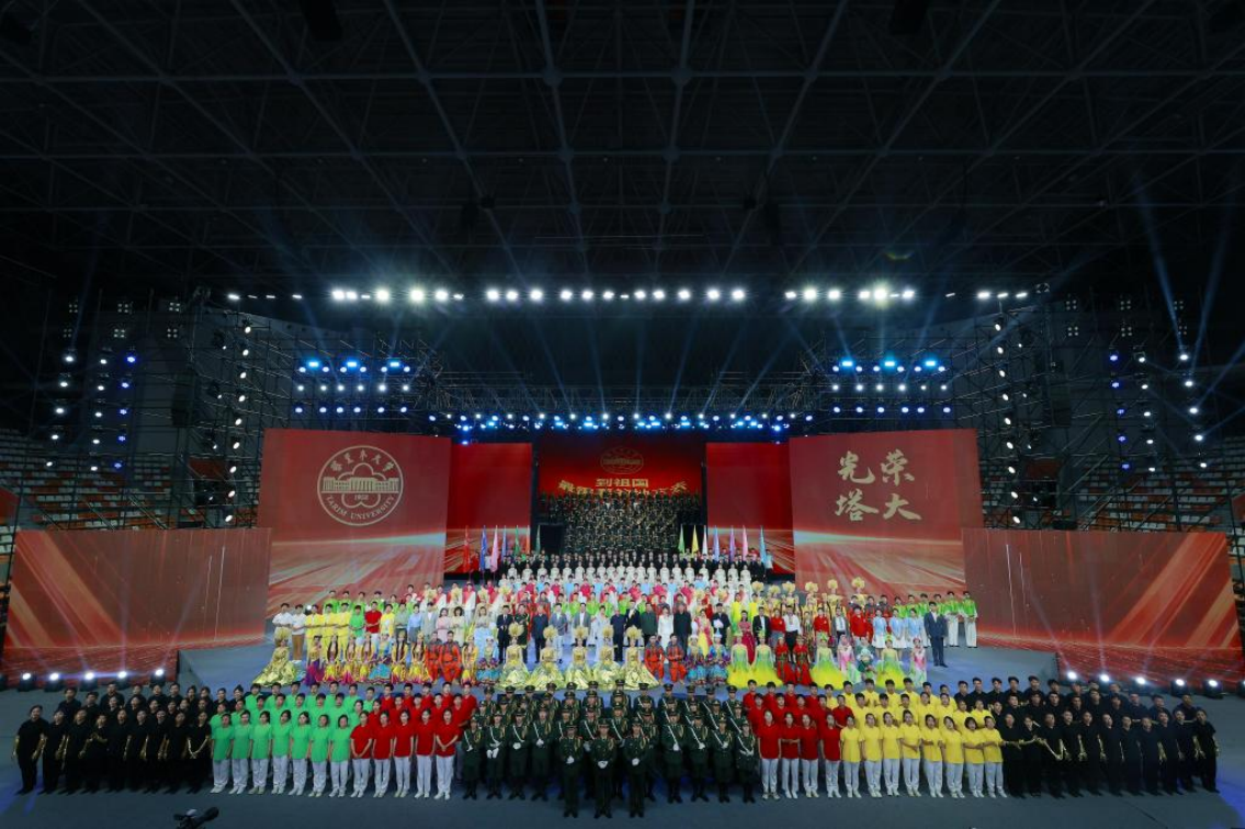 余明星 季亚楠 朱彤10月4日晚,庆祝塔里木大学建校65周年文艺演出“我是一棵胡杨”在塔里木大学新体育馆上演。