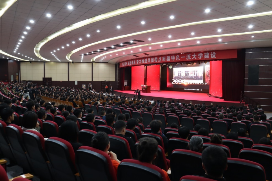 10月5日,塔大师生齐聚塔里木大学报告厅内,庆祝塔里木大学建校65周年。胡杨网李雨浪 摄