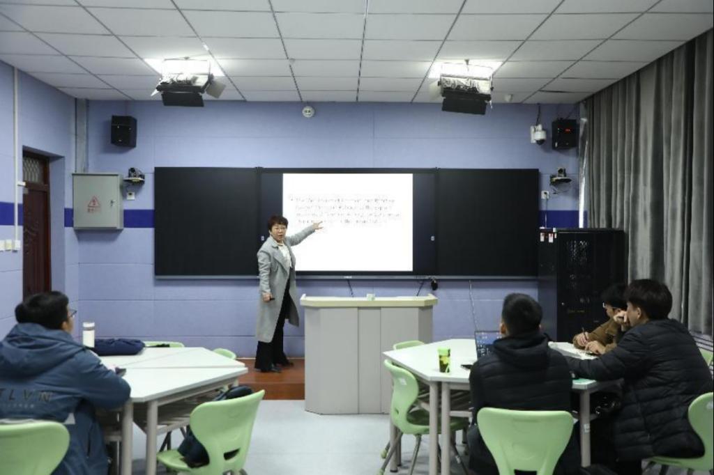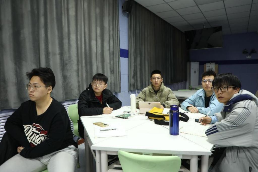 郭兴宇(左二)认真聆听张锐讲课。张大松摄