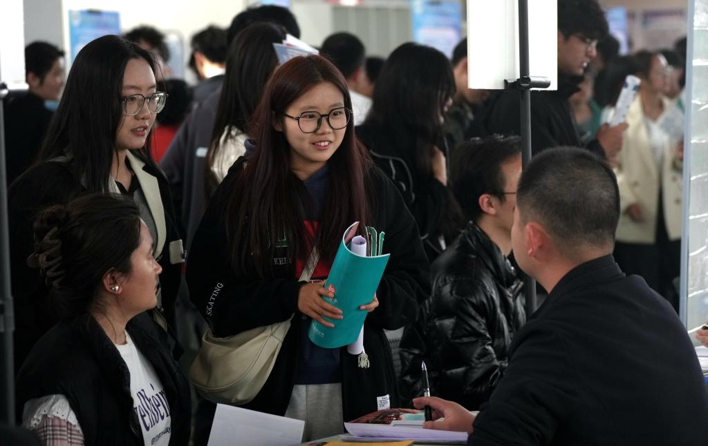 3月20日,塔里木大学的学生在校园招聘会上求职。