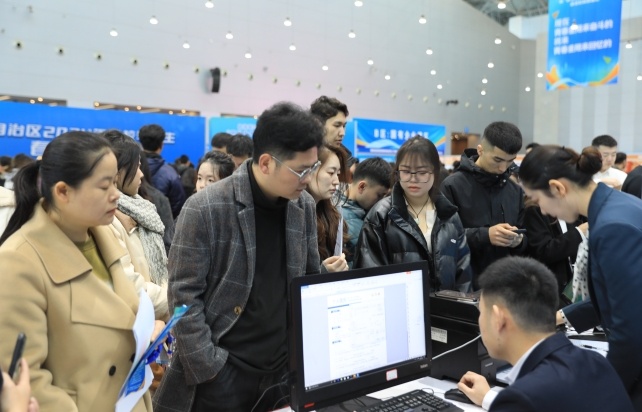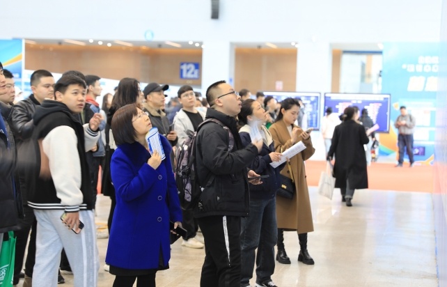 招聘会现场,来自各高校的学生手持简历在各展位前穿梭,与用人单位就工作内容、薪资待遇、发展空间等问题与企业招聘人员交流。