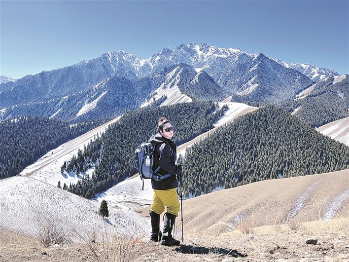 3月17日,徒步爱好者深入乌鲁木齐后峡踏青,在山坡上驻足享受春光。兵团日报全媒体记者 王素凡 摄