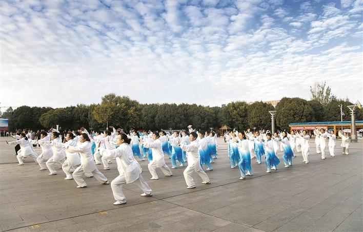 九师白杨市职工群众参加“太极展演·全民健身”活动(资料图片)。朱昌华 摄