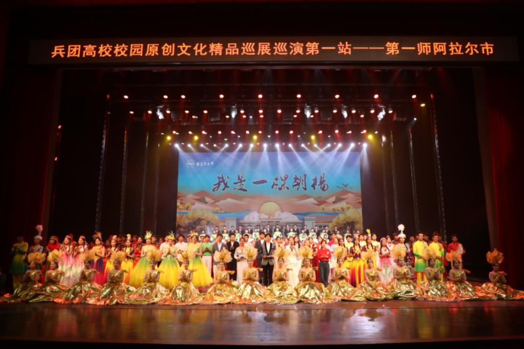 4月24日,新疆生产建设兵团高校校园原创文化精品巡展巡演在一师阿拉尔市启动,由塔里木大学师生编排的舞台剧《我是一棵胡杨》亮相阿拉尔大剧院。