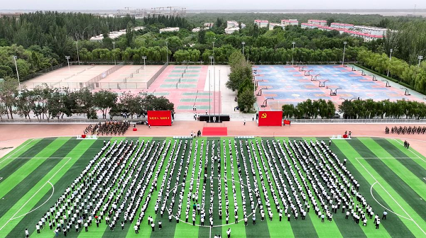 6月30日上午,伴随着雄壮的奏唱国歌声,塔里木大学庆“七一”升国旗、入党宣誓活动在东区运动场举行。