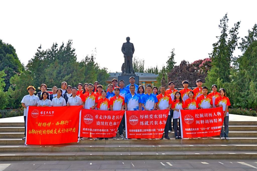 铜像耸立,松柏挺立。6月29日早晨,塔里木大学胡杨·融媒体中心的师生们,着装整齐、神采飞扬,列队站在红色文化广场王震将军铜像前,举行2024年暑期“三下乡”社会实践活动出征仪式。