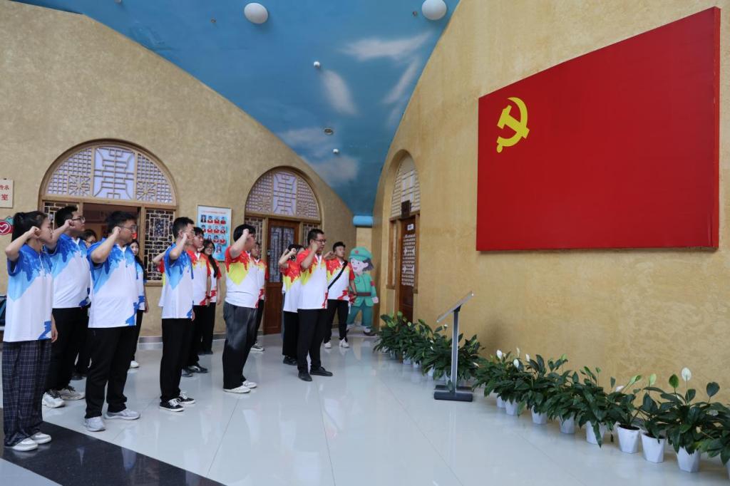 “我志愿加入中国共产党,拥护党的纲领,遵守党的章程,履行党员义务……”师生们举起右拳,面向党旗,庄严宣誓,表达了对党和国家的无限忠诚和无比热爱。