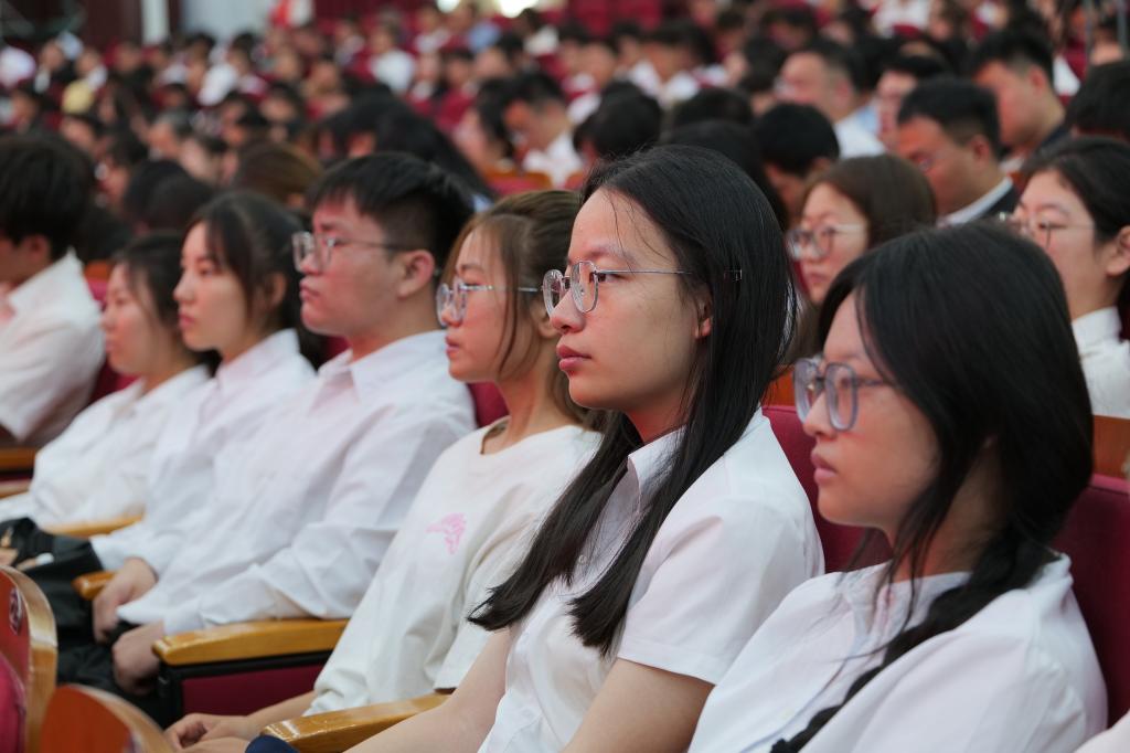 塔里木大学党委副书记、校长闫祥林带领全场干部教师宣誓,表示要大力弘扬教育家精神,坚持用胡杨精神育人、为兴疆固边服务,落实立德树人根本任务,努力做“四有”好老师,为教育强国建设作出更大贡献。
