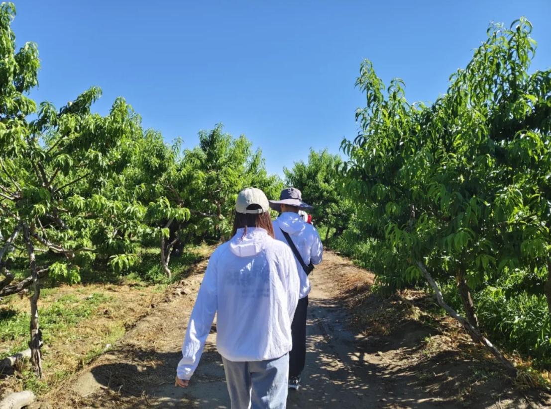一片片郁郁葱葱的桃树,果实累累。在蟠桃园里,团队成员们领略到了习近平总书记对加快建设农业强国、推进农业农村现代化的重视。据农户介绍,这些桃树是当地农民通过辛勤劳动和科学种植培育出来的,蟠桃果型个大、形状扁圆、色泽鲜艳、肉质细腻、皮韧易剥、汁多甘厚、味浓香溢。它们不仅为当地农民带来了可观的经济效益,更成为了民族团结的象征。