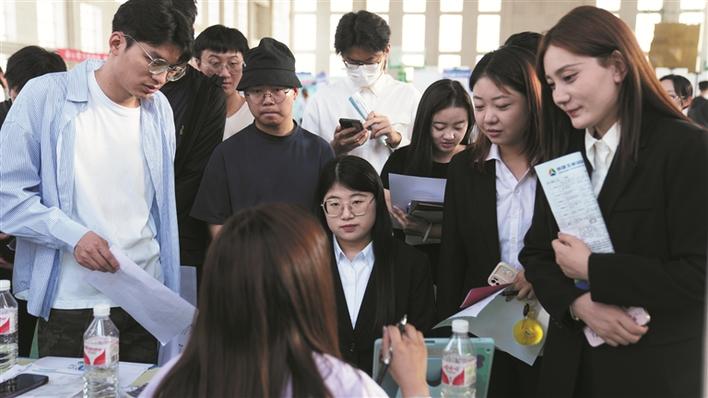 9月25日,大学生们向招聘企业工作人员咨询岗位信息。当天,由兵团教育局、兵团人力资源和社会保障局主办的大中城市联合招聘暨兵团高校毕业生秋季招聘活动在塔里木大学举行,共有85家企业为大中专毕业生提供就业岗位2800余个。 兵团日报全媒体记者 王志清 摄