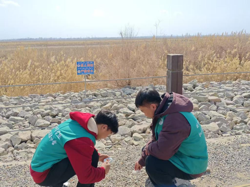 园艺与林学学院红石榴志愿者协会志愿者们,在塔里木河畔,开展巡河净滩环保志愿服务。他们沿着环城大道仔细清理生活垃圾,自觉践行环保理念,共同构筑美丽家园。