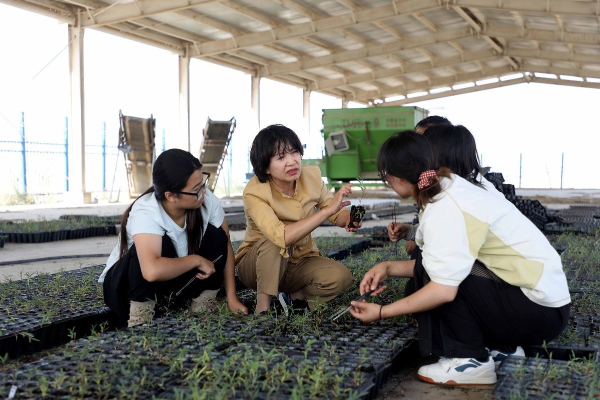 李志军(左二)正在指导团队成员胡杨幼苗移栽前的注意事项。林国强 摄