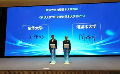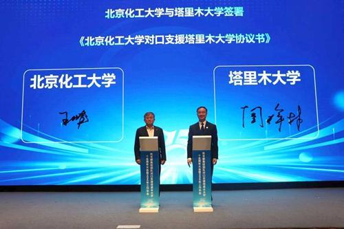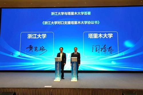 塔里木大学校长闫祥林从奋进十五年——对口支援成效与经验,擘画新蓝图——“十五五”发展目标,携手再出发——精准施援、靶向发力等方面,作了教育部高校团队对口支援塔里木大学十五周年工作汇报。中国农业大学代表教育部高校团队与塔里木大学签订了对口支援框架协议。塔里木大学与中国农业大学、浙江大学、华中农业大学、北京化工大学、东华大学签订了新一轮对口支援协议书。