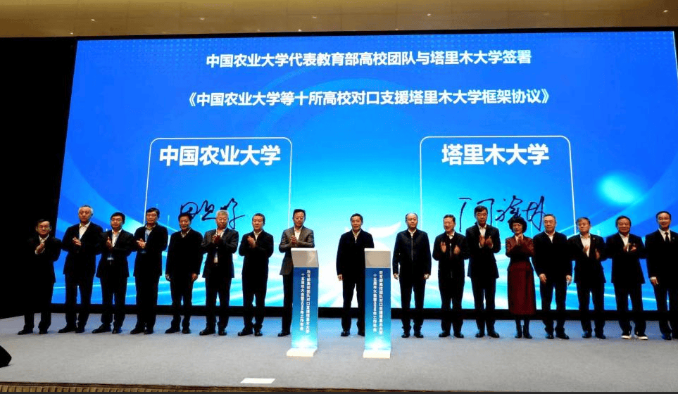 11月18日,教育部高校团队对口支援塔里木大学十五周年大会暨2025年工作年会在浙江大学举行。其间,中国农业大学代表教育部高校团队与塔里木大学签订了对口支援框架协议。塔里木大学与中国农业大学、浙江大学、华中农业大学、北京化工大学、东华大学签订了新一轮对口支援协议书。