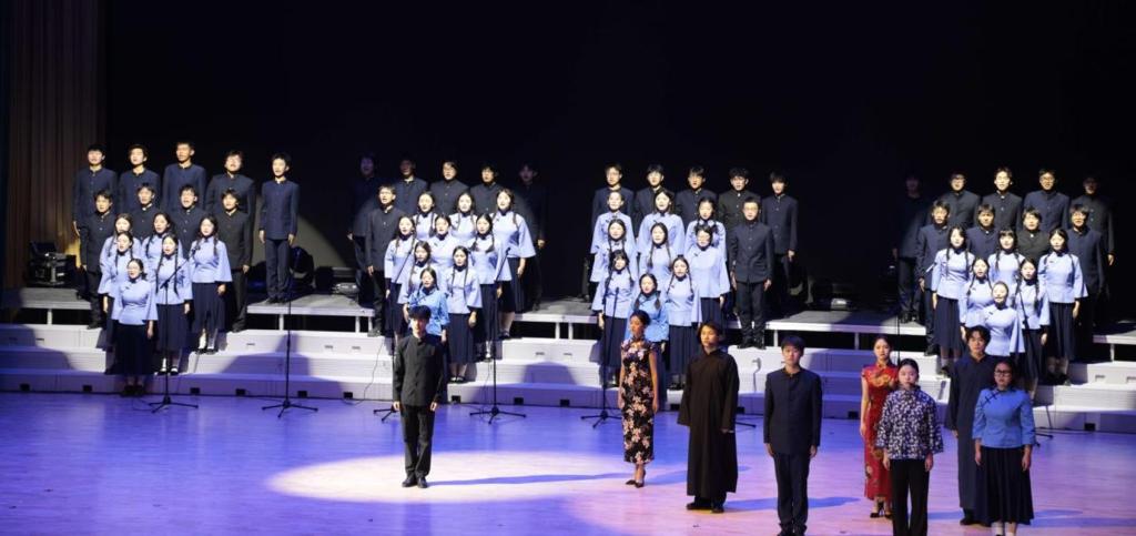 第一篇章“胡杨·初心——烽火回响 青春呐喊”聚焦“一二九”爱国运动纪念,合唱《不忘初心》《有我》、短剧《觉醒年代》、独唱《松花江上》等节目,回溯峥嵘岁月、诠释先辈精神,引发全场强烈共鸣。